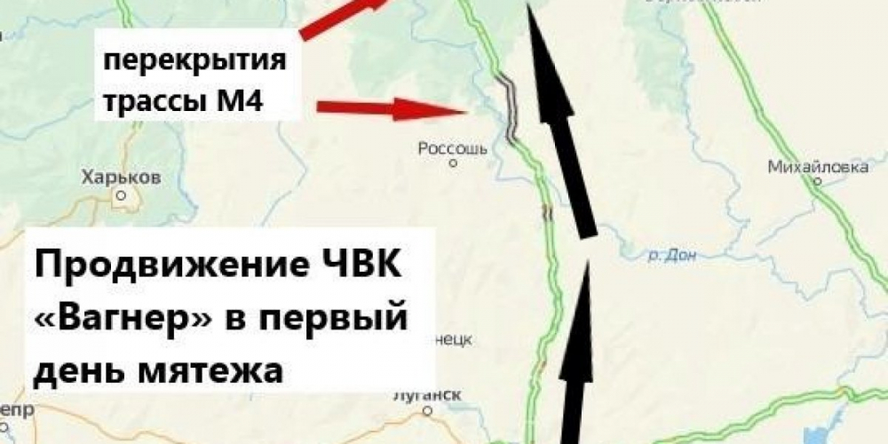Пригожин объявил о начале «марша справедливости» на Москву. Жители присылают в каналы кадры движения по ней военной техники. Стрелков-Гиркин сообщил, что пригожинцы «заходят» в Воронеж. «Военные объекты в Воронеже взяты под контроль ЧВК «Вагнер», армия переходит на сторону народа», — сообщает один из пригожинских каналов.