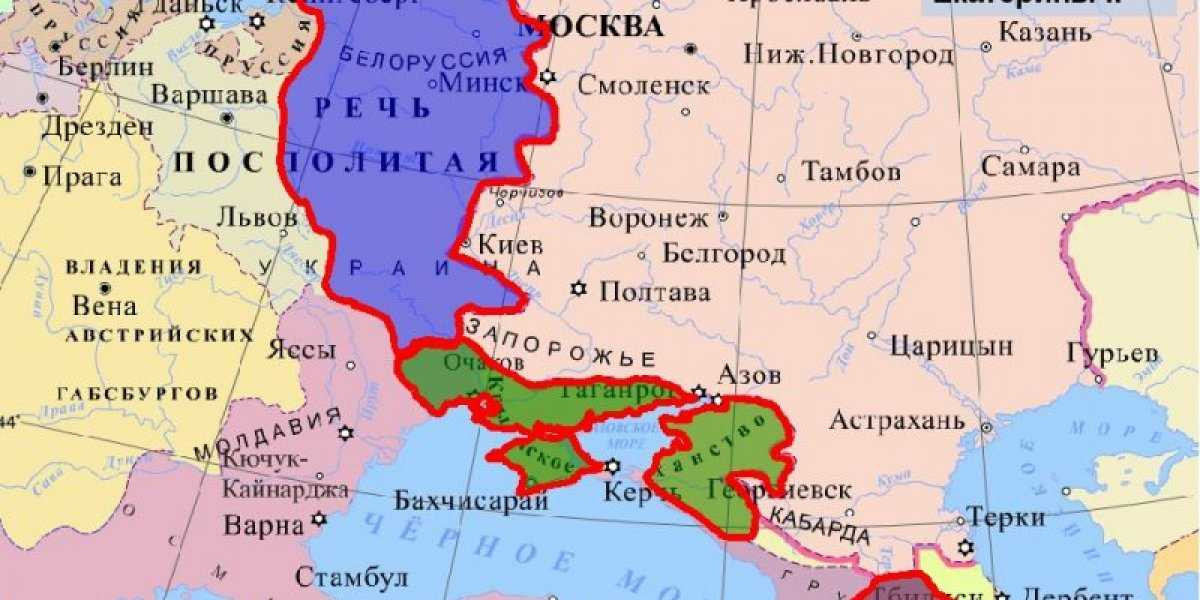 Немка по происхождению, Екатерина подняла славу России на небывалую высоту. Польша при ней перестала существовать, а Турцию она планировала разделить на несколько государств. Для движения России на юг был основан «священный город» — Севастополь в месте, где князь Владимир принял крещение Руси. Проживи Екатерина ещё несколько лет и границы России были бы на берегах Средиземного моря.
