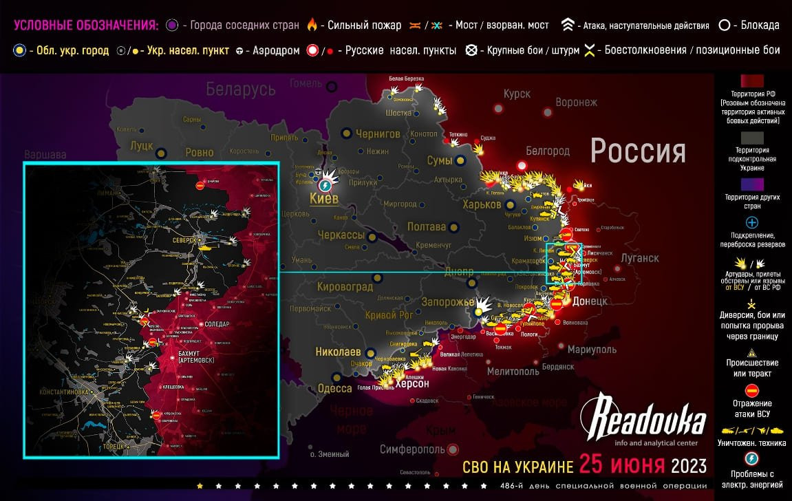 Карта боевых действий на Украине по состоянию на сегодняшний день: данные на 26.06.2023