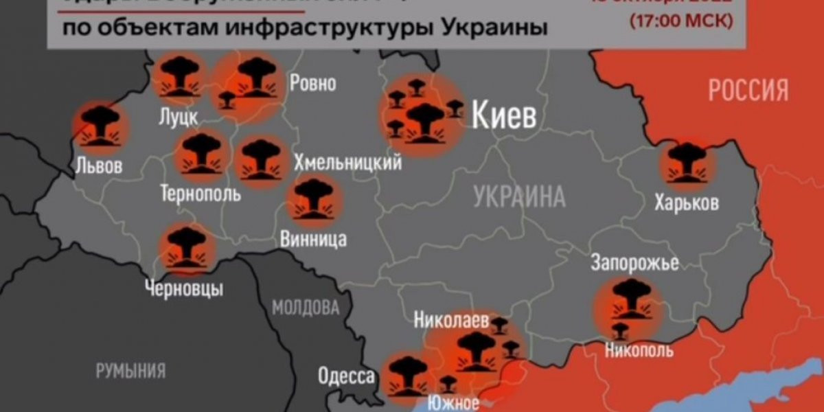 Сводка по ударам возмездия по состоянию на 2022 г. Украина под ударами возмездия — в разных регионах страны, где были замечены ракеты, слышны взрывы. Поражены объекты энергетической инфраструктуры