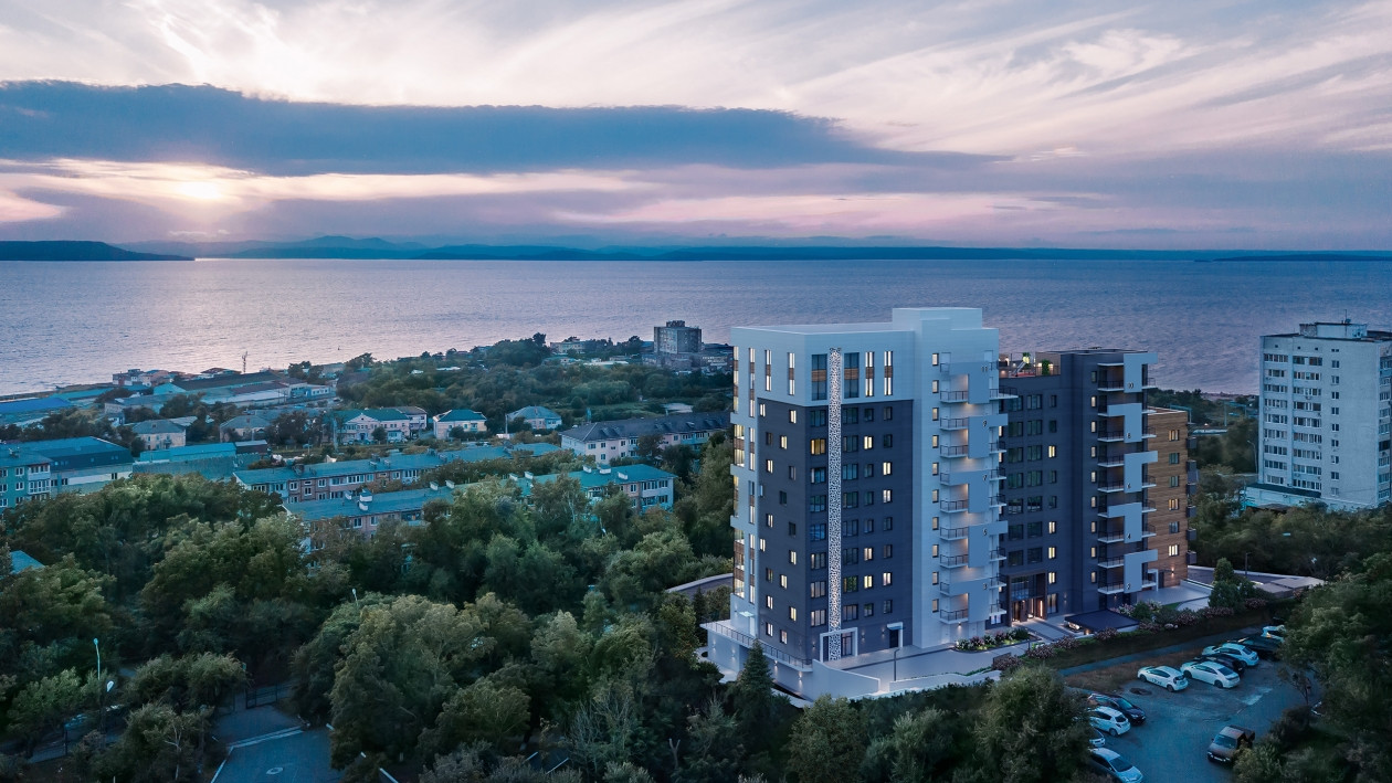 Примечательно, что окна практически каждой квартиры жилого комплекса открывают шикарный вид на море, позволяющий каждый вечер любоваться на красивейшие закаты. А из части жилых помещений разворачивается дополнительный панорамный вид на город.