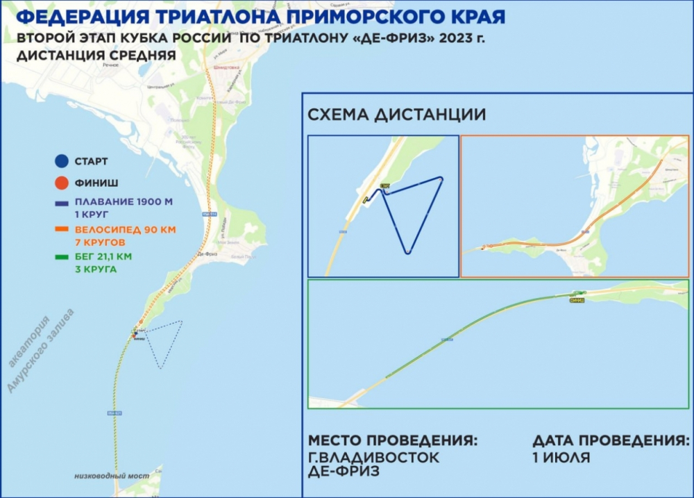 Схема дистанций триатлона. Фото: правительство Приморского края