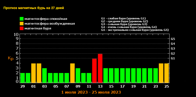 Прогноз магнитных бурь на июль 2023 года: актуальные данные о неблагоприятных днях