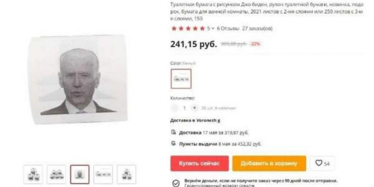 Подтереться Байденом можно недорого – всего за двести рублей. А вот для американцев удовольствие в разы дороже: почувствовать мягкость губ президента можно за восемь долларов на Amazon. Цена кусается, но покупатели находятся.