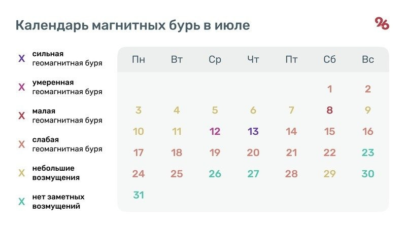 Календарь магнитных бурь на июль
