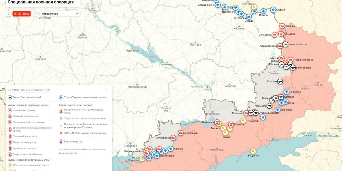 Последние новости о ходе военной спецоперации на Украине на сегодня, 1 июля 2023 года, новая карта боевых действий на Украине в материале «Интересной России».