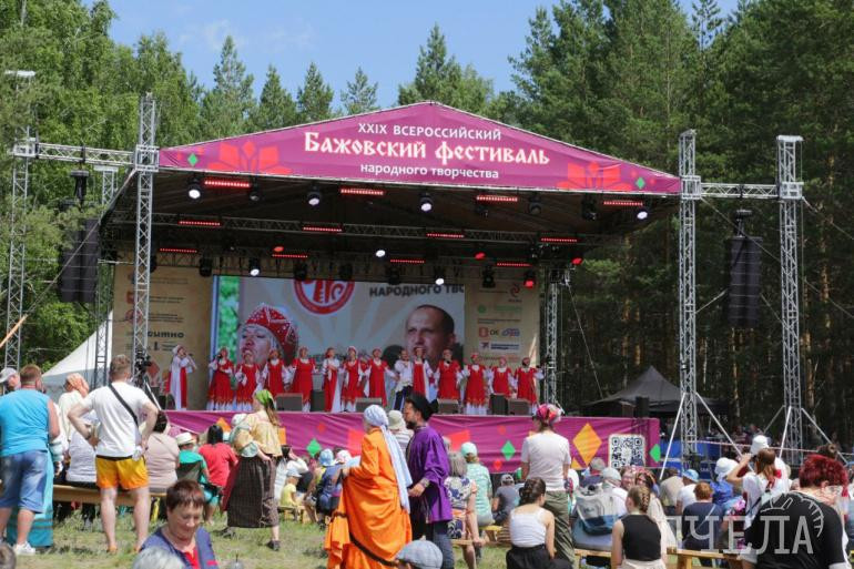 Бажовский фестиваль — одно из самых ярких летних событий на Южном Урале. Небольшое село на пару дней превращается в большую фестивальную площадку, на которой собираются тысячи талантливых мастеров, артистов, ремесленников, художников из разных уголков России. Участники представили зрителям танцевальные, песенные номера, и, конечно, плоды своего рукоделия.