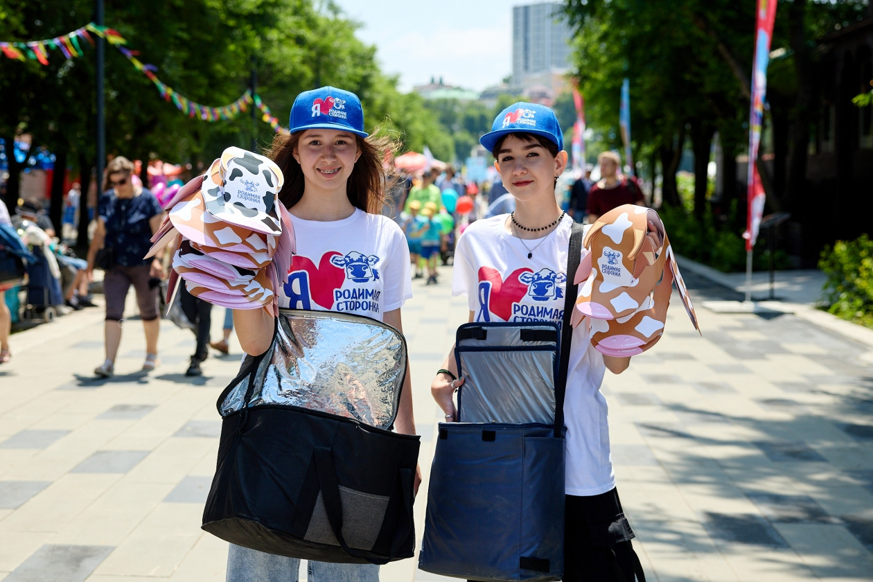 “Мы пришли на день города всей семьёй, не думали, что будет так жарко. Ночью был ливень, и мы подумали, что будет пасмурная погода. Мороженое очень вкусное, мы и сами покупаем его в магазинах. От кепки в восторге наш ребенок — такая смешная коровка получилась”, — поделилась жительница Владивостока Ирина.