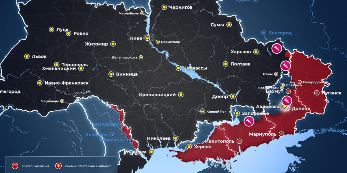 На данный момент наиболее сложная обстановка сложилась на Бахмутском направлении. Противник зачистил правый берег канала Северский Донец — Донбасс в районе Курдюмовки. До недавнего времени ВС РФ успешно отражали и продолжают отражать атаки ВСУ в районе Клещеевки, но украинцы пошли южнее, решив создать условия для удара по Клещеевке с фланга.