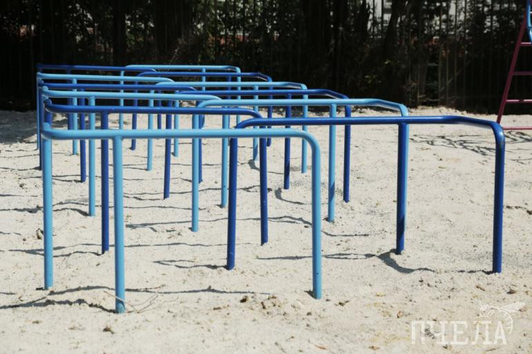 К началу учебного года здесь появятся баскетбольная и волейбольная площадки с мягким покрытием из резиновой крошки, полоса препятствий.