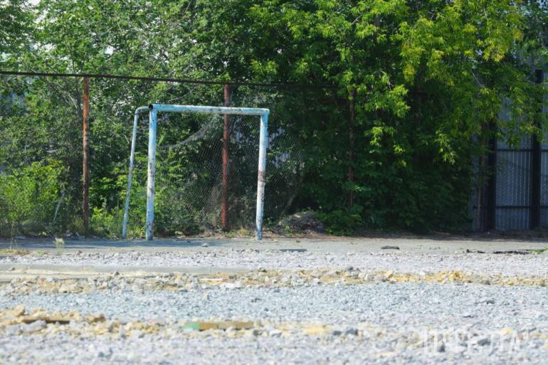 На уличном стадионе появился новый искусственный газон, футбольные ворота и ограждения