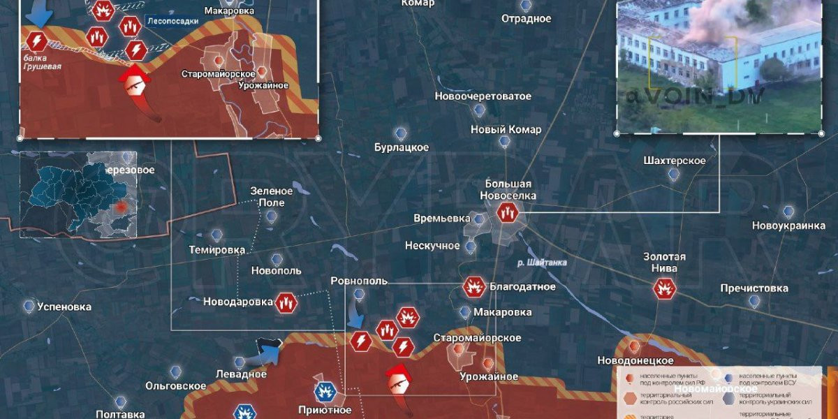 Сейчас инженерно-саперные группы 1 отбр и 35 обрмп ВСУ укрепляют позиции в лесополосе, а также разминируют подступы для возобновления атак на Старомайорское. При этом севернее у Богатыря отмечено присутствие 38 обрмп ВМС Украины.