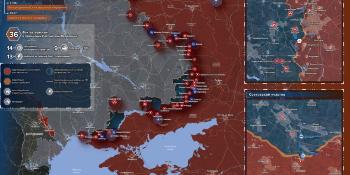 Боевые действия на Украине 10 июля 2023: новая карта боевых действий на Украине 10.07.2023. Новая карта Украины
