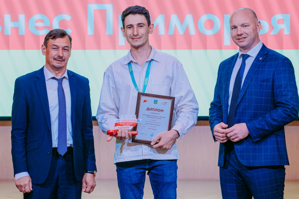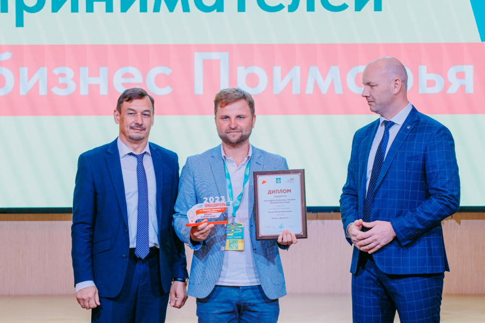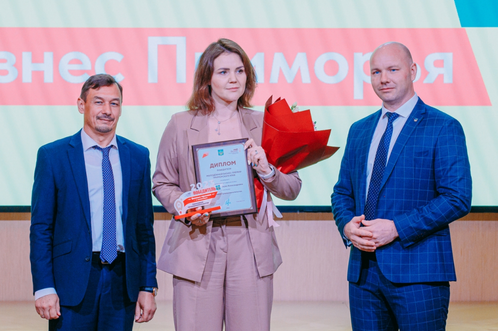 В рамках торжественного старта первого молодежного бизнес-форума заместитель министра Иван Машунин вместе с руководителем центра “Мой бизнес” Андреем Шевченко вручили награды победителям Молодежной бизнес-премии Приморского края 2023. Так, в номинации “Производство” награду получил индивидуальный предприниматель Павел Богуш, в номинации “Бизнес в сфере услуг” победу одержал предприниматель Михаил Кучеев, в номинации “Социальное предпринимательство” — генеральный директор ООО “ГК БТБ инвест” Владислав Бибеев, в номинации “Креативное предпринимательство” — предпринимательница Анастасия Онучина. В номинации “Торговое предприятие” награду получила генеральный директор ООО “БОГАТОЕ” Дарья Назаренко, в номинации “Самозанятость” — Эдуард Ващенко. Победителем в номинации “Стартап” стал генеральный директор ООО “ФИНАП” Алексей Гуцуляк. В номинации “Инновационное предпринимательство” победителем стал генеральный директор ООО “СКЮБ” Юлия Беседина.