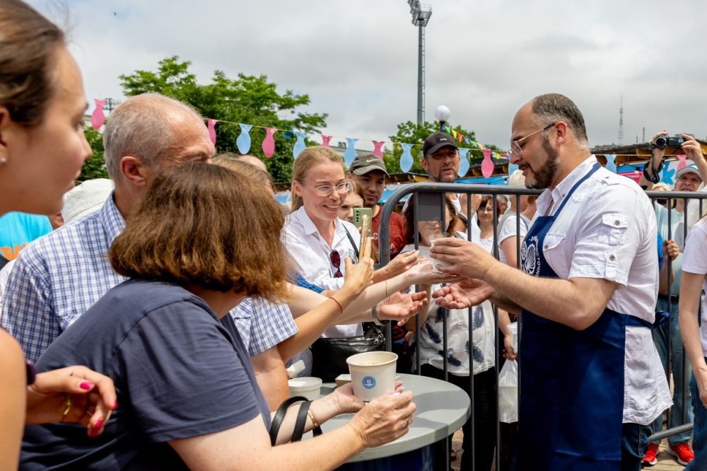 Праздник удался! К такому мнению пришли участники и гости традиционного Дня рыбака во Владивостоке, праздника, который празднуют практически в каждой приморской семье. Организаторы приложили все силы и старания к тому, чтобы мероприятие получилось по-настоящему семейным, ярким, креативным, особенным и неповторимым. И в этот воскресный день на Спортивной набережной было всё, чем славится День рыбака во Владивостоке: наваристый рыбацкий ДоброСуп с сардиной иваси и дальневосточной ламинарией; кулинарный баттл ВИП-команд, возглавляемых шеф-поварами известных приморских ресторанов; рыбная ярмарка-продажа; изысканные и в то же время демократичные блюда и закуски на “Рыбном фудкорте”, разнообразные кулинарные мастер-классы и мастер-классы для детей и, конечно же, музыкальный марафон (0+).