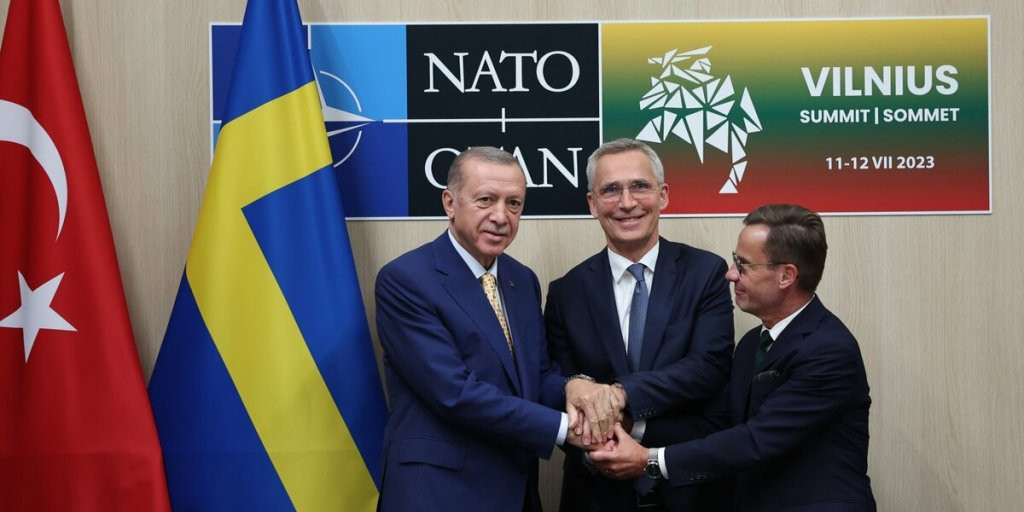 Косвенно сведения о том, что Россия и Турция не договорились подтверждают следующие события, которые стали стремительно развиваться. На следующий день после телефонного разговора Фидана и Лаврова, то есть 10 июля Эрдоган прибыл в Вильнюс на саммит НАТО, где принялся целоваться в десна с ген. секом НАТО Йенсом Столтенбергом и тут же заявил ошарашенной мировой общественности, что Турция дает добро на вступление Швеции в НАТО, причем сделает это максимально быстро.