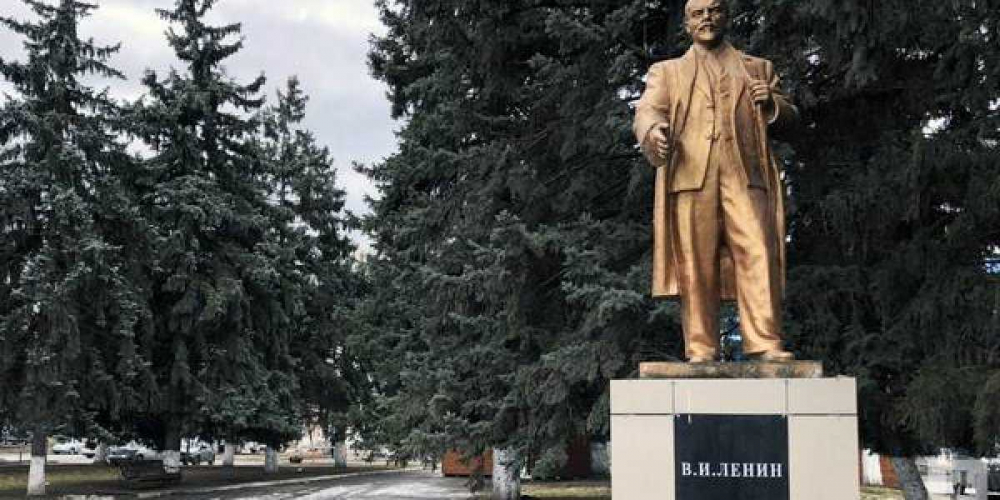 Ближе к центру города хмурую погоду пытается разбавить устремленным в сторону Владикавказа взором позолоченный вождь мирового пролетариата.