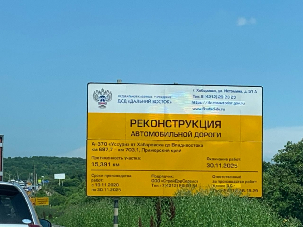 По условиям контракта, на содержание участка трассы между 240 и 730 км автомобильной дороги А-370 “Уссури” Хабаровск — Владивосток выделено более 1 млрд 653 млн рублей федеральных средств. На сайте “Госзакупок” озвучены и сроки исполнения контракта с 1 июля 2023 года по 31 августа 2025 года.
