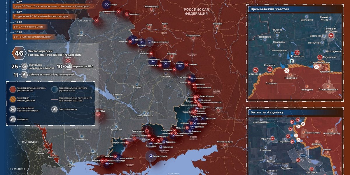 Карта военных действий и ситуация на фронтах вечером 14 июля от Телеграм-канала » Readovka»