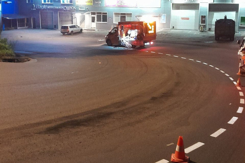 “Обновили разметку на пешеходных переходах, искусственных неровностях, а также наносим новые осевые линии — сплошные и прерывистые. Работы проводим по ночам, чтобы днем не мешать автомобилям”, — прокомментировали на дорожном предприятии.