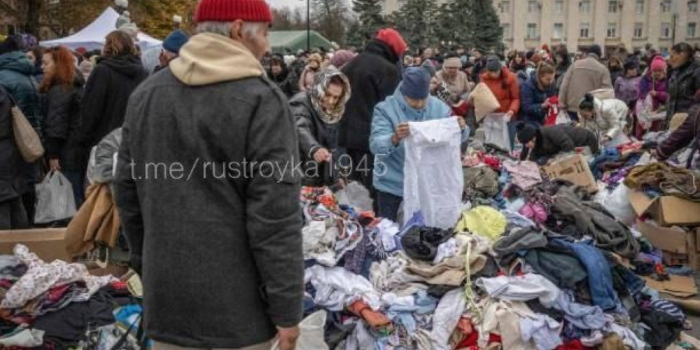 Жителям города Херсон доставили гуманитарную помощь в виде украинских тряпок. При этом, в Херсоне нет света и воды. Власти Киева объявили о «добровольной эвакуации» из Херсона, не объяснив куда и как уезжать.