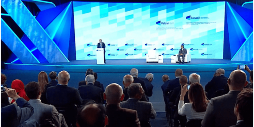 Тема обсуждения на Валдае называлась: Глобальные потрясения в 21 веке. «Мы с удивлением видим паралич, разворачивающийся в странах, которые привыкли считать себя флагманами прогресса»,- сказал Владимир Путин. И что западные страны имеют право делать все, что хотят, но подавляющее большинство российского общества отвергает эти новые способы мышления. Издание рекомендует прочесть всю речь Путина и заверяет, что он говорит Божьи истины. И что, либо американцы проснутся и начнут сопротивляться всему тому, о чём упомянул Владимир Путин, либо обнаружим, что живем в рамках системы социального кредита, подразумевающего тотальный контроль