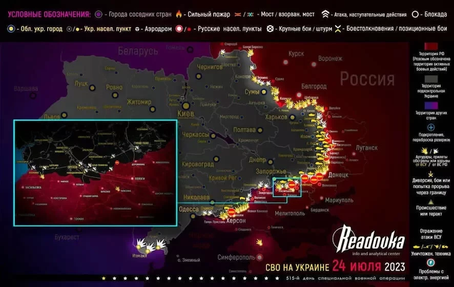 Карта боевых действий на Украине по состоянию на 25.07.2023