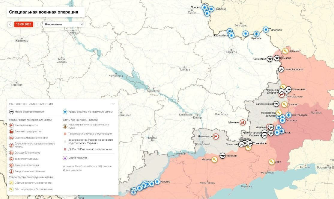 Карта боевых действий на Украине: актуальные сведения на 18.08.2023