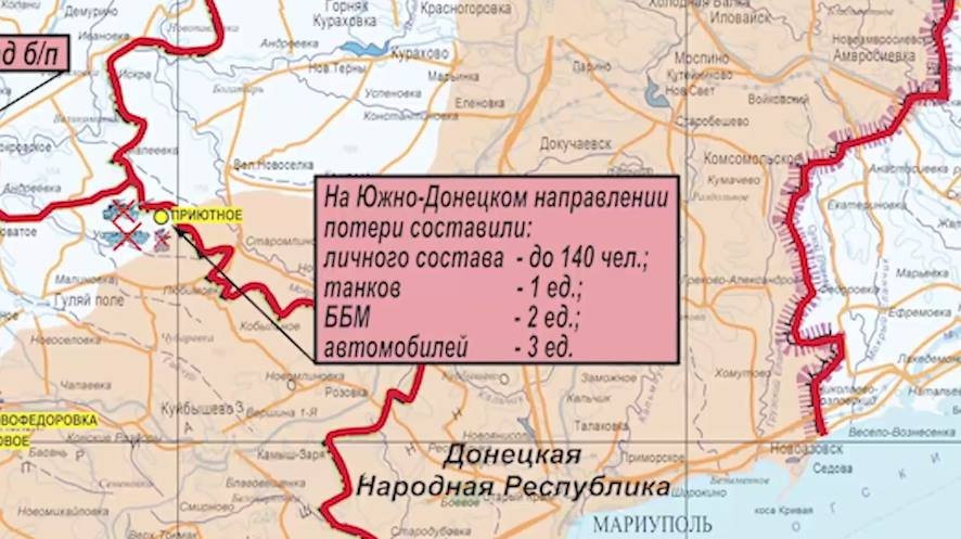 На Южно-Донецком направлении отражена атака ВСУ в районе Новомайорского. Потери противника составили более 175 украинских военнослужащих.