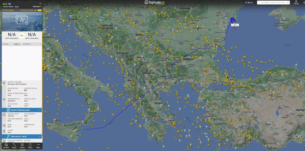 Самолет-разведчик Boeing P-8A Poseidon Военно-морских сил США находился у Черного моря во время ракетной атаки ВСУ на Севастополь.