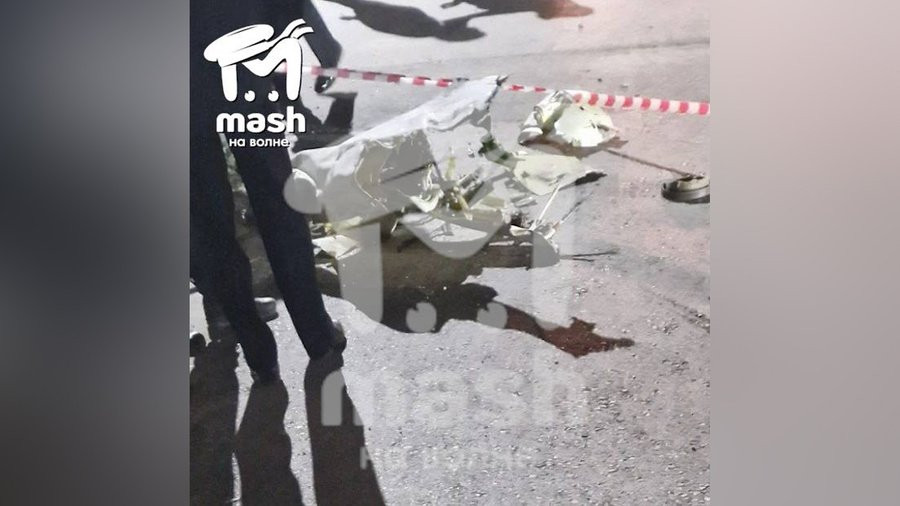 Появились фотографии обломков беспилотного летательного аппарата, сбитого вчера вечером в Севастополе. Снимками поделился Telegram-канал "Mash на волне".