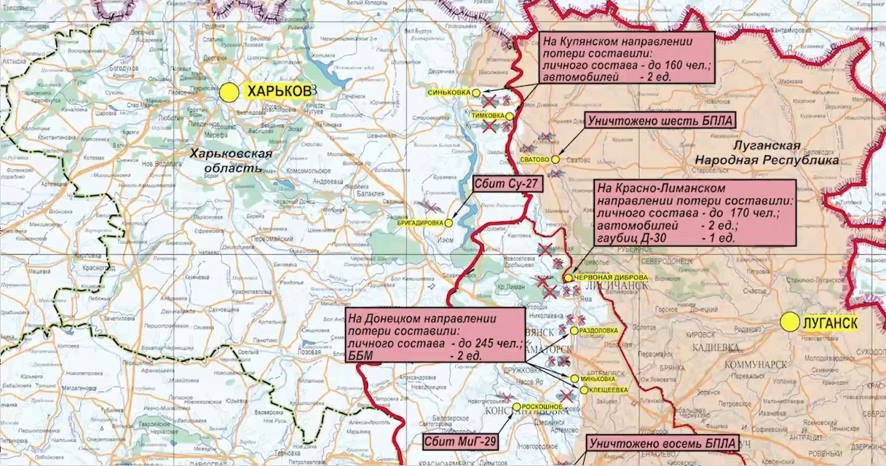 На Донецком и Южно-Донецком направлениях общие потери ВСУ составили до 280 человек убитыми и ранеными, в районе населенного пункта Богатырь уничтожен украинский склад боеприпасов.