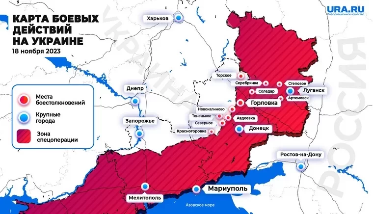 Новая карта боевых действий на Украине по состоянию на 12:00 мск от 18.11.2023