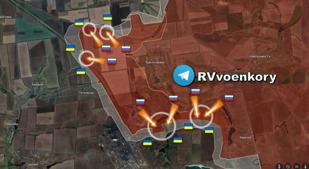 Российские бойцы атакуют севернее Красногоровки и дачного посёлка «Точмаш», продвигаются в направлении дачного посёлка «Заря» и Степового. Сообщается, что основные силы противника уже покинули Степовое, поселок частично перешел под контроль ВС РФ, часть его территорий остается в серой зоне.