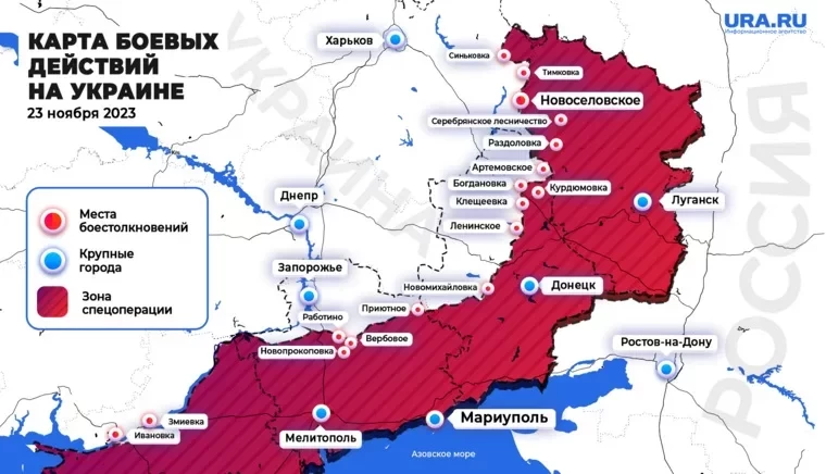 Карта боевых действий в зоне СВО на Украине по данным на 12:00 от 23.11.2023
