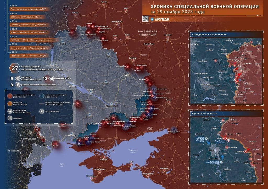 Актуальная карта боевых действий на Украине на 06:00 мск от 30 ноября 2023 года