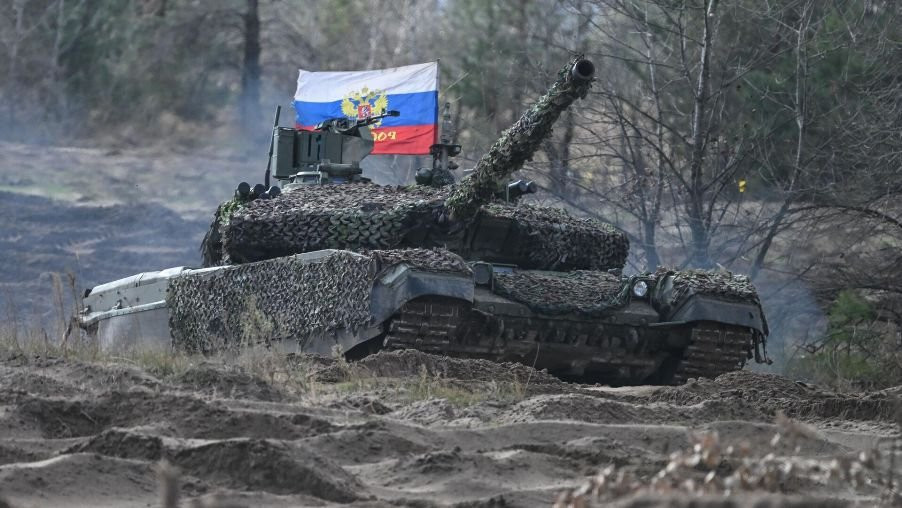 Танкисты ВС РФ поддерживают наступление штурмовых отрядов в районе Марьинки