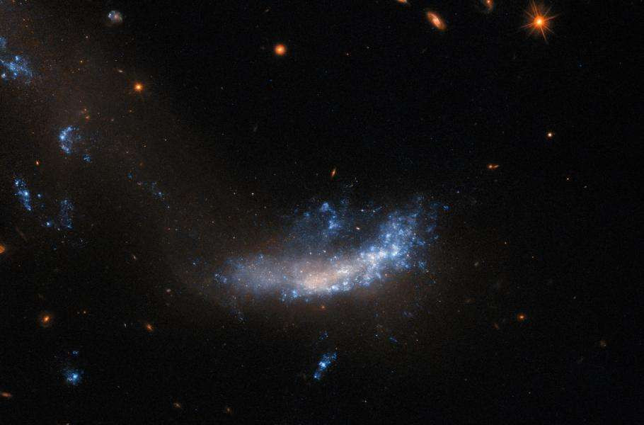 UGC 5189A – живописная карликовая галактика, похожая на маленькую бриллиантовую брошь, наблюдаемая на расстоянии около 150 миллионов световых лет в созвездии Льва. В 2010 году в этом уголке Вселенной взорвалась сверхновая, которую мы теперь знаем, как SN 2010jl. Это был необычный взрыв даже по меркам сверхновых.
